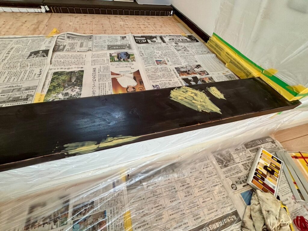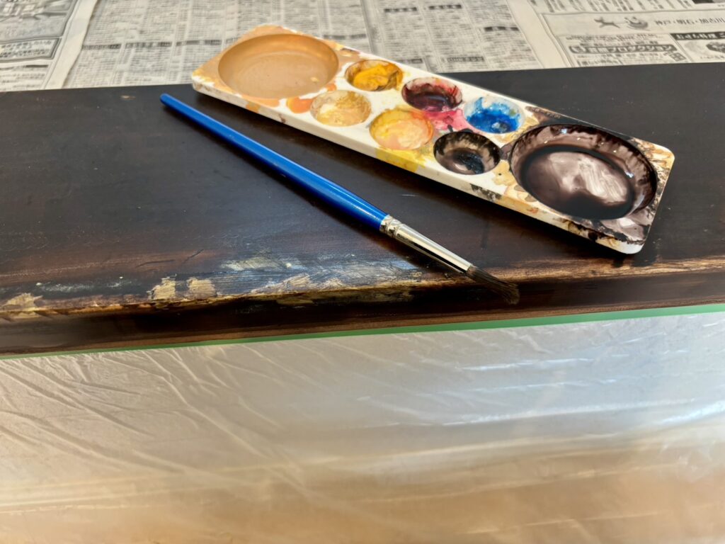まずは仕上げの塗装が均一な色になるように補修材の部分だけ他の部分に近い色に着色します。
