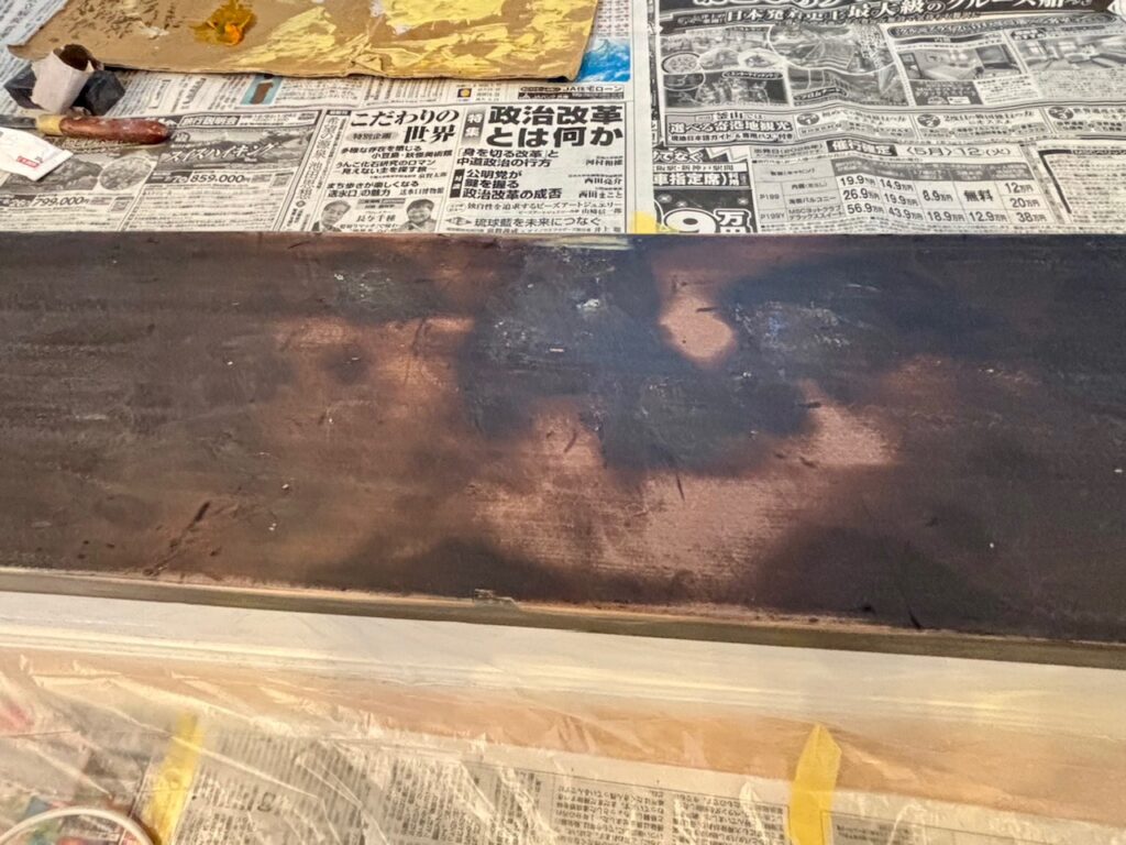 キズ面を平坦に成型した後は塗装工程になります。